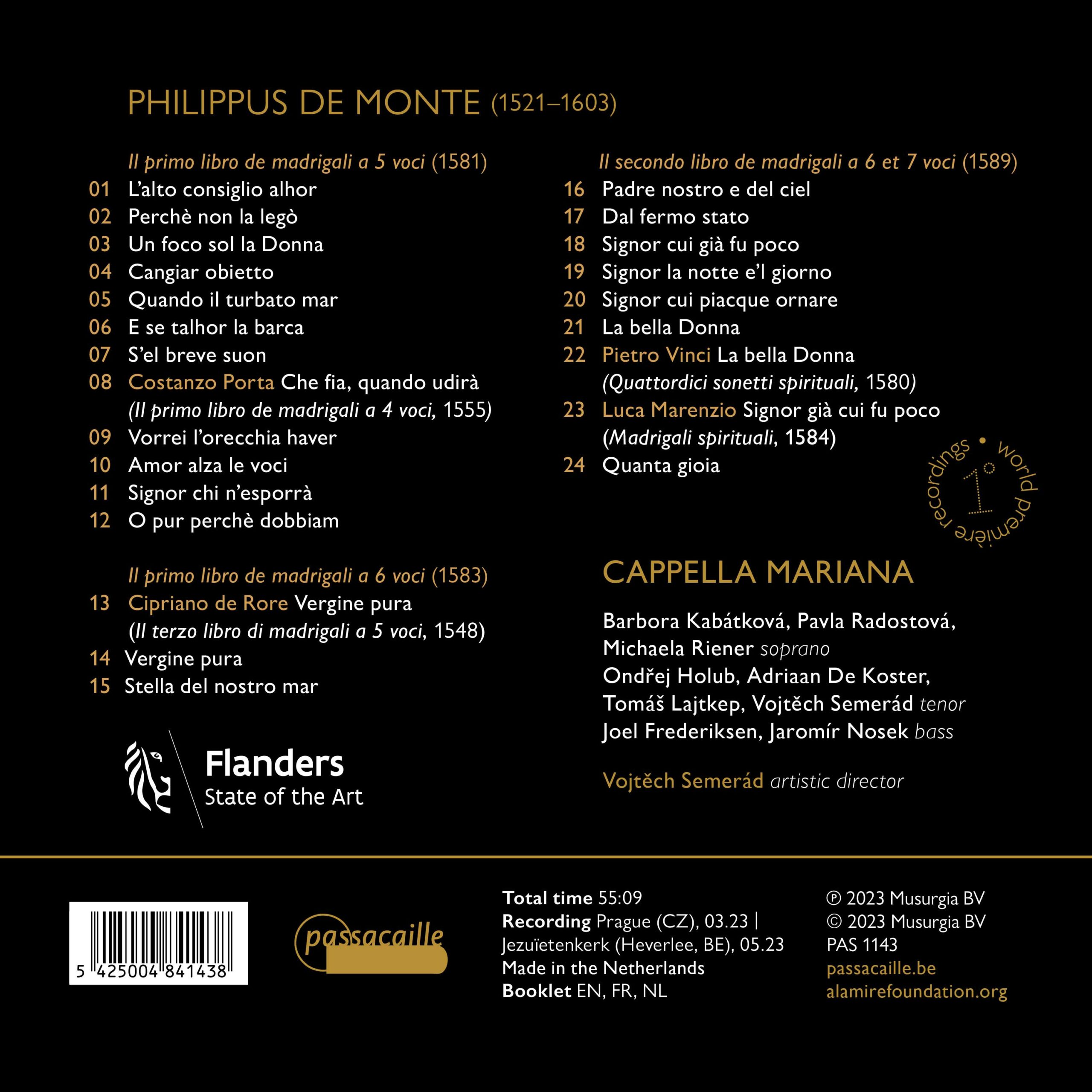 L’œuvre de Philippus de Monte, compositeur renommé du 16e siècle et maître de la chapelle impériale des Habsbourg, comprend plus de 800 madrigaux italiens, des chansons françaises, environ 40 messes et 250 motets. Le présent enregistrement est consacré au madrigal spirituel, un mélange unique de profane et de sacré que Monte a contribué à populariser.