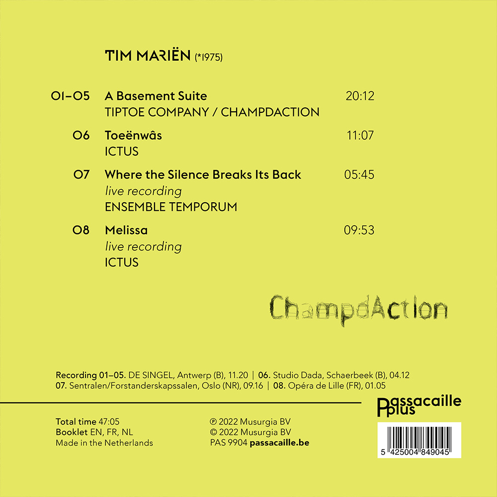 Dit portretalbum presenteert werken die Tim Mariën sinds 2001 heeft gecomponeerd en die zijn uitgevoerd door de Tiptoe Company, door Ictus en door Ensemble Temporum. De modulaire strijkerscompositie A Basement Suite, waaraan het album zijn naam ontleent, voert ons mee naar een surrealistisch klankveld en nodigt ons uit in Tim Mariëns wonderkamer van klankideeën.
