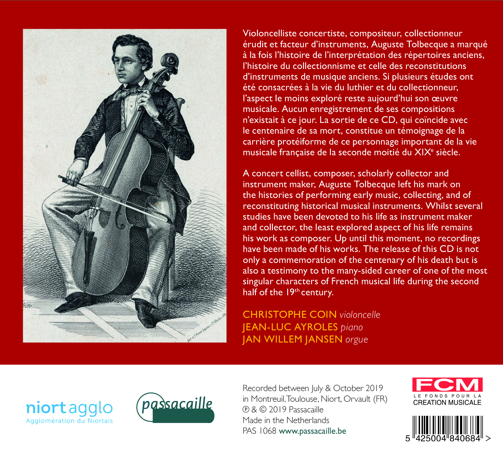 Als concertcellist, componist, wetenschappelijk verzamelaar en instrumentenbouwer heeft Auguste Tolbecque zijn stempel gedrukt op de geschiedenis van het uitvoeren van oude muziek, het verzamelen en het reconstrueren van historische muziekinstrumenten. Terwijl verschillende studies zijn gewijd aan zijn leven als instrumentmaker en verzamelaar, blijft het minst onderzochte aspect van zijn leven zijn werk als componist. Tot op heden zijn er geen opnames gemaakt van zijn werken. De uitgave van dit album is niet alleen een herdenking van zijn honderdste sterfdag, maar ook een getuigenis van de veelzijdige carrière van een van de meest bijzondere figuren uit het Franse muziekleven in de tweede helft van de 19e eeuw.