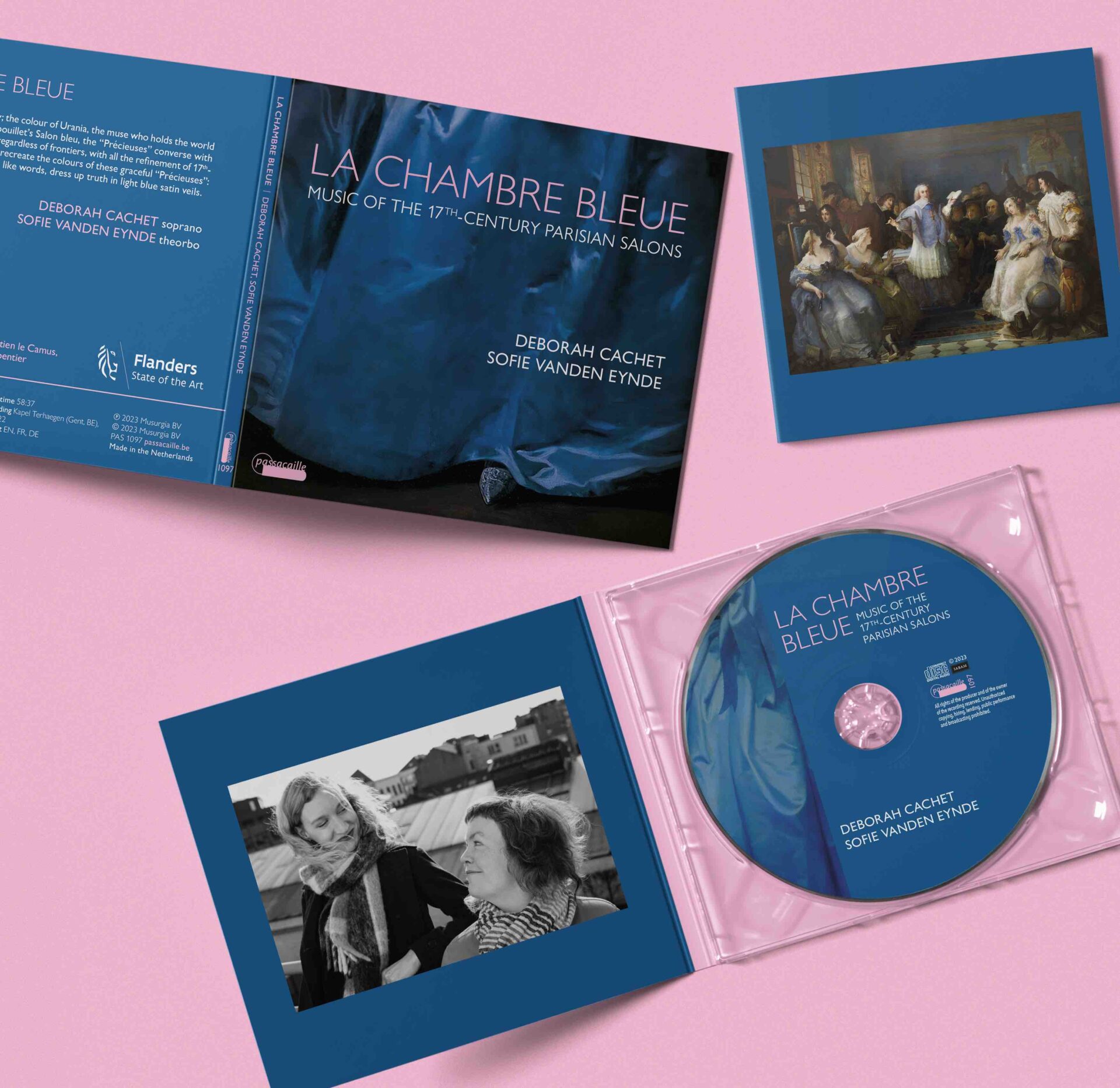 Bleu : la couleur du ciel étoilé, d’Uranie, la muse qui tient le monde dans sa main. Dans le Salon bleu de Madame de Rambouillet, les « Précieuses » conversent entre elles dans un cadre élégant, sans tenir compte des frontières, avec tout le raffinement du 17e siècle. Deux dames musiciennes recréent les couleurs de ces gracieuses « Précieuses ». Mettez-vous à l’aise dans des tonalités qui, comme les mots, habillent de vérité des voiles de satin bleu clair.
