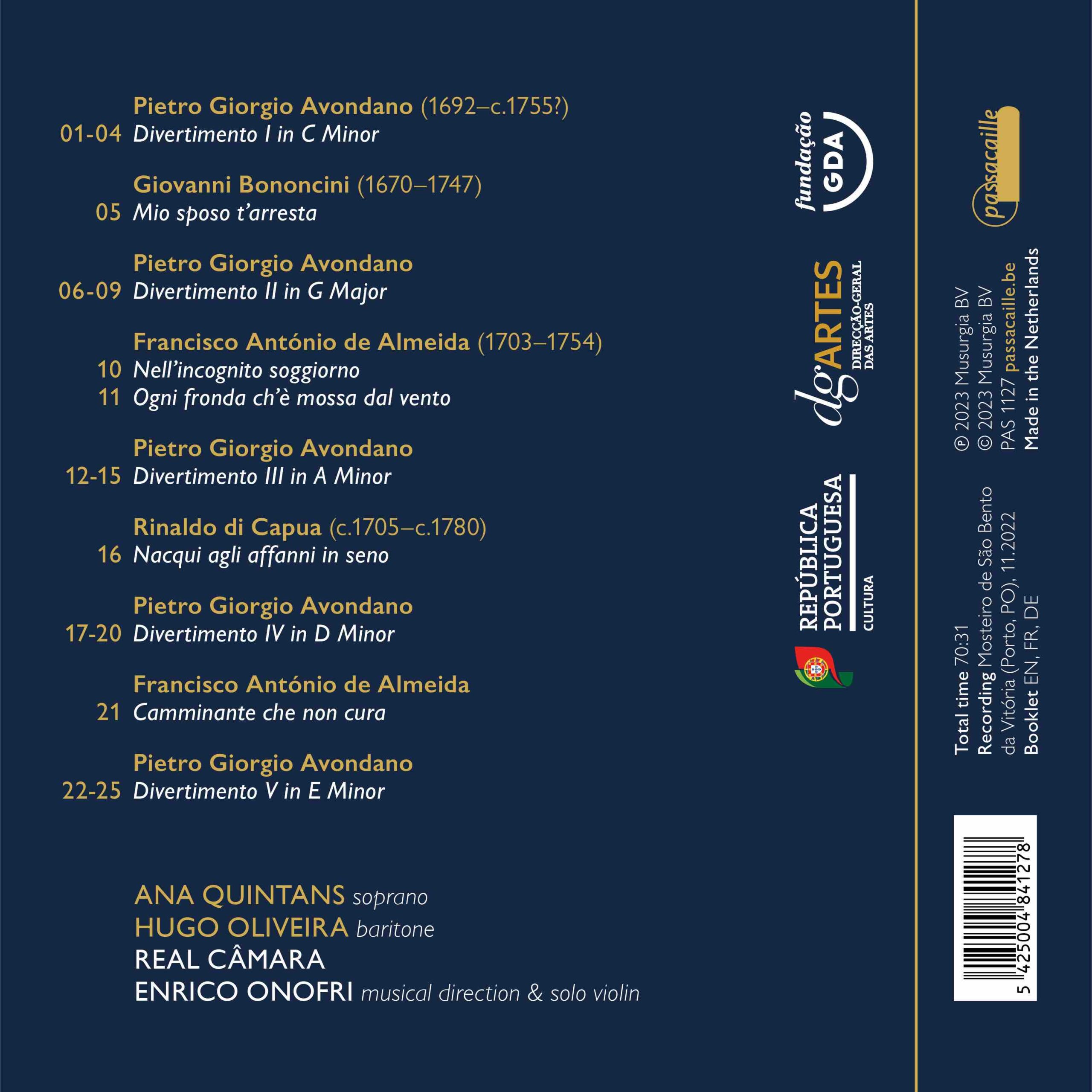 In its first recording, Real Câmara recreates the spirit of the original Portuguese court orchestra, bringing to life a forgotten repertoire written for performance in Lisbon, from the Divertimenti by Pietro Giorgio Avondano, the Genoese concertmaster of the orchestra, to opera arias by the Portuguese composer Francisco António de Almeida and by the Italian composers Rinaldo di Capua and Giovanni Bononcini.