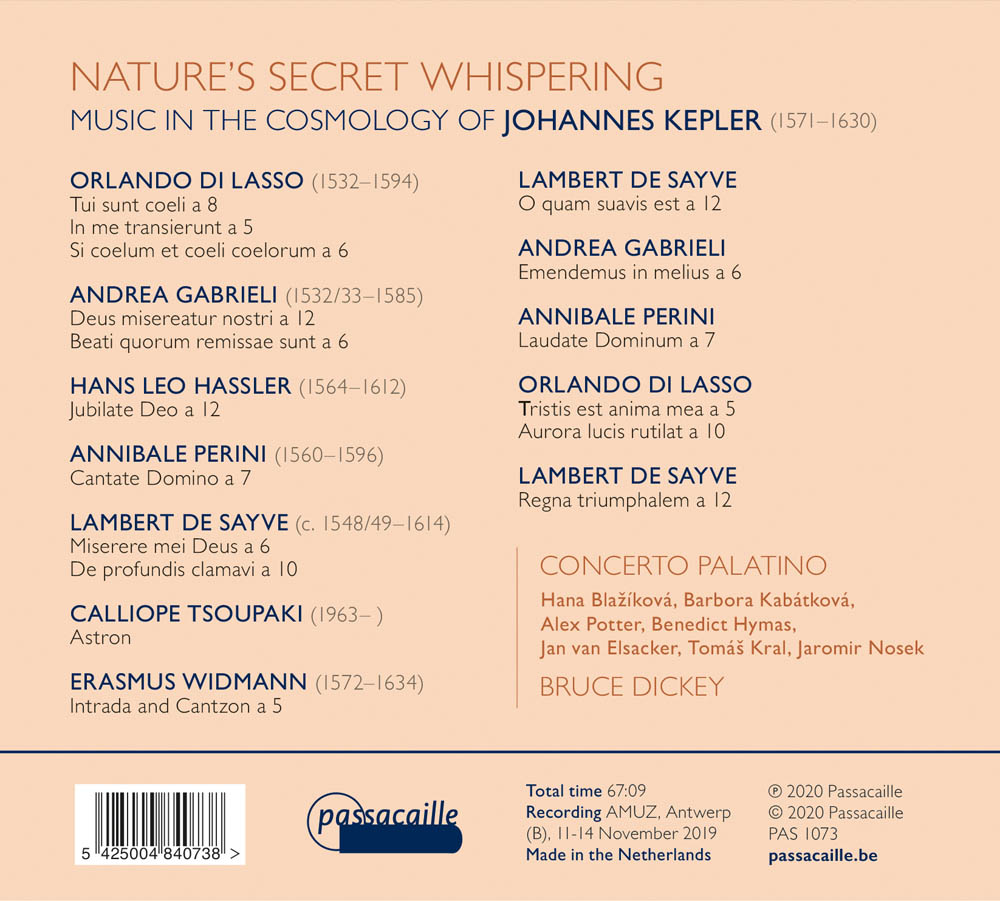 Concerto Palatino stelt een programma voor waarin de ideeën van Johannes Kepler en de muziek uit zijn tijd centraal staan. Met Tui sunt coeli van Orlando di Lasso is de uitgangspunt en verkent de groep andere polyfone en polychorale muziek van Lasso en zijn tijdgenoten (Andrea Gabrieli, Lambert de Sayve, Hans Leo Hassler, enz.). Daarnaast hebben ze voor het project een nieuw werk besteld bij de gerenommeerde componiste Calliope Tsoupaki. Haar nieuwe stuk heet ASTRON (naar de sterren) en is gebaseerd op een hymne van Delphi.